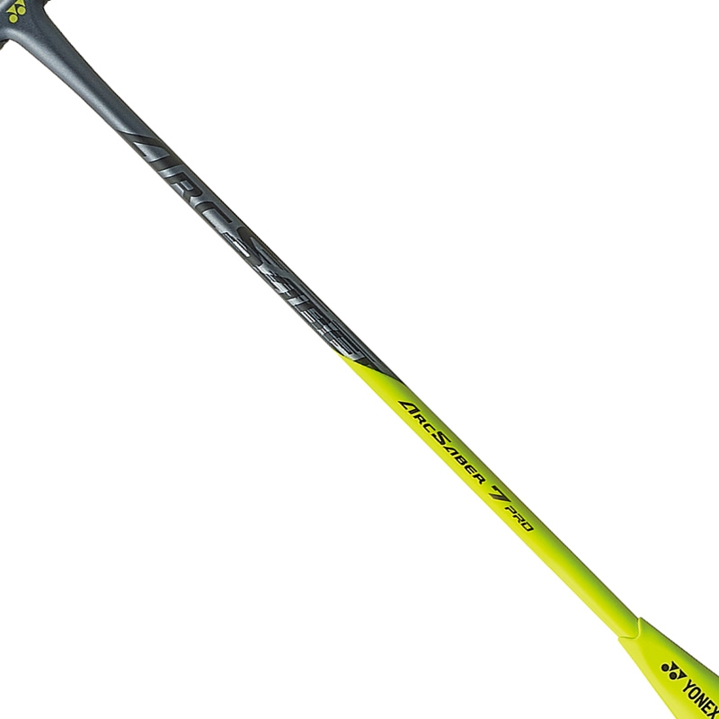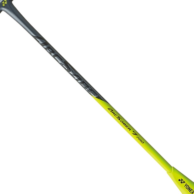 新的 ARCSABER 7 增強了“等待飛行”的開發理念。對先前模型的分析表明,通過增加框架穩定性同時增加穿梭接觸時間來改進的潛力。 ARCSABER 系列獨有的框架結構提高了框架穩定性,該框架結構在桿面的頂部和底部具有堅硬的結構,從而減少了擊球時不必要的變形。為了延長飛梭接觸時間,與頂部和底部不同,框架的側面更柔軟,允許在甜蜜點周圍具有靈活性。 ARCSABER 7 中的軸也經過重新設計以增加扭矩。